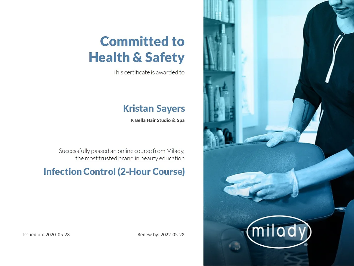 - Milady Infection Control Certification