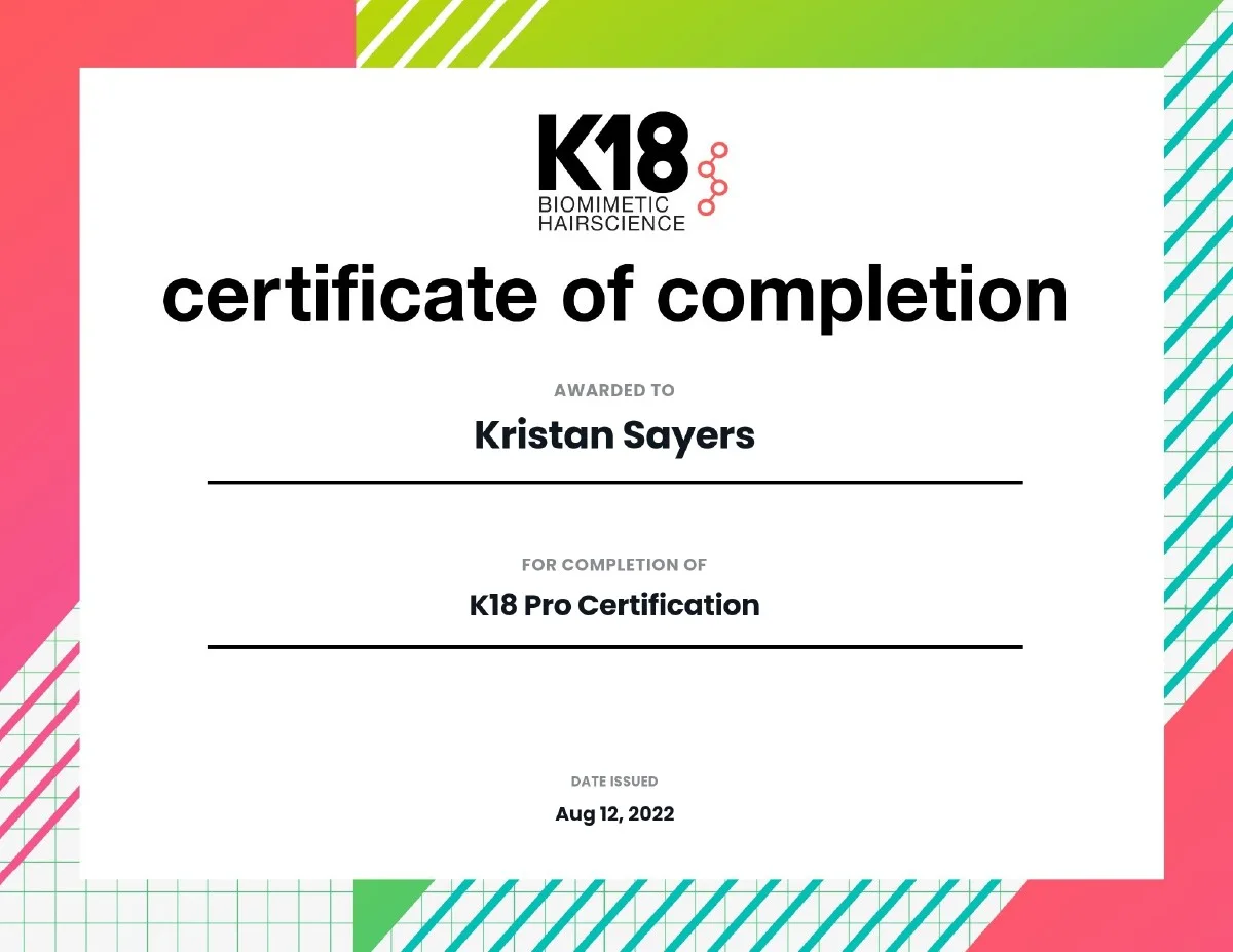 - K-18 Biometric Hairscience Pro Certification