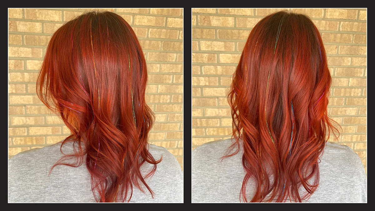 Tinsel can be worn for everyday fun, special events, holidays, or celebrations. Placement, color selection, and quantity are customized to suit your style and hair type.