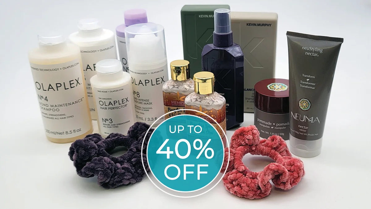 Come in and see select products for up to 40% off! Stylist favorites, hand-picked just for you from professional hair and skin care companies such as Olaplex, Hempz, Neuma, Kevin Murphy, and more!